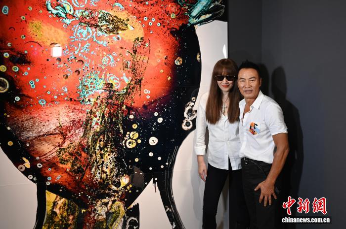 10月16日,由香港时装设计师协会主办的“耀眼任达华”展览在香港中环大馆举行。香港任达华的个人审美通过各种艺术作品得以展现。图为任达华与妻子合影。中新网记者 李志华 摄